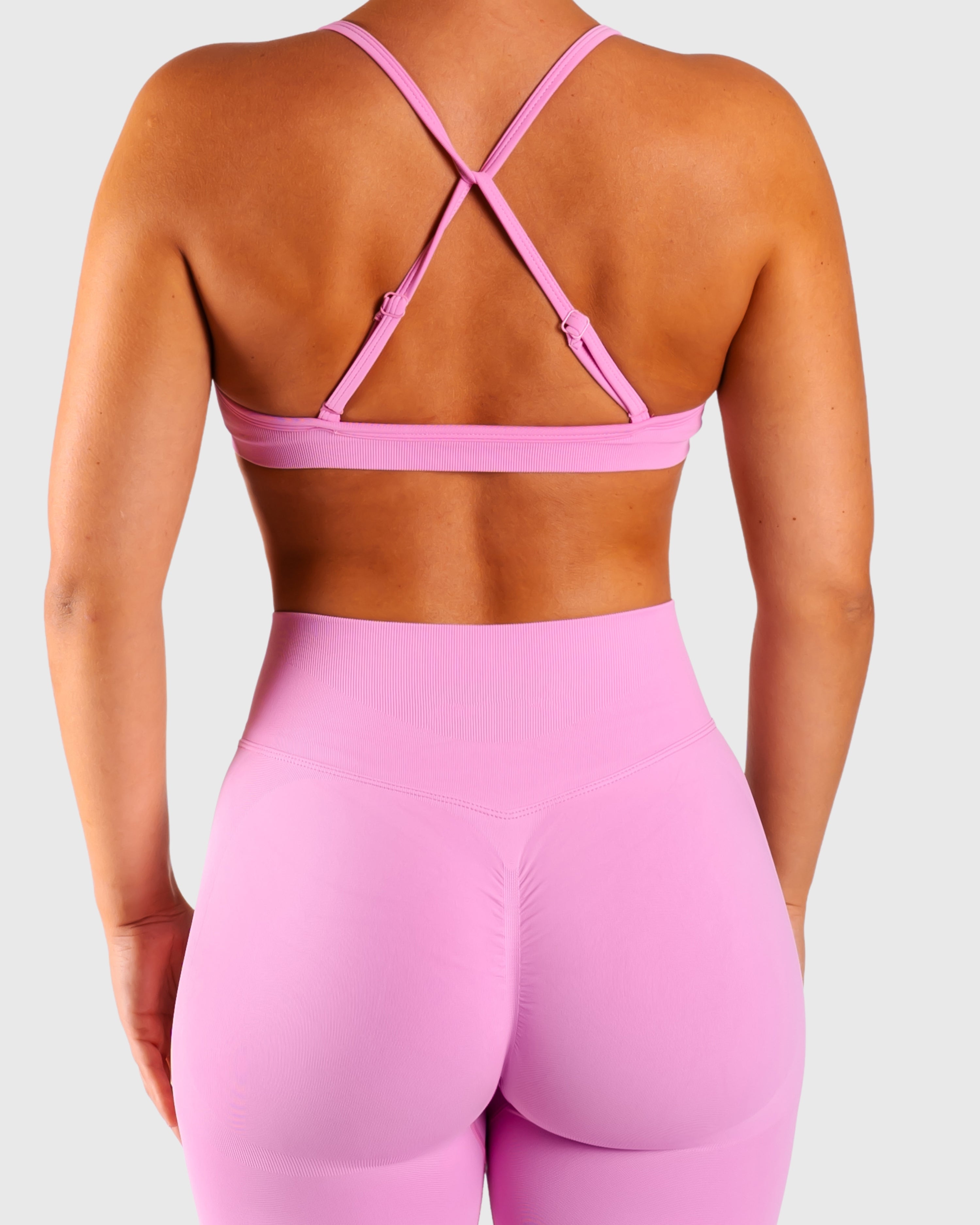 Vivid sports bra is designed for both style and function. It has a scrunch detail at the front that creates a flattering V-shaped neckline, highlighting the bust area.