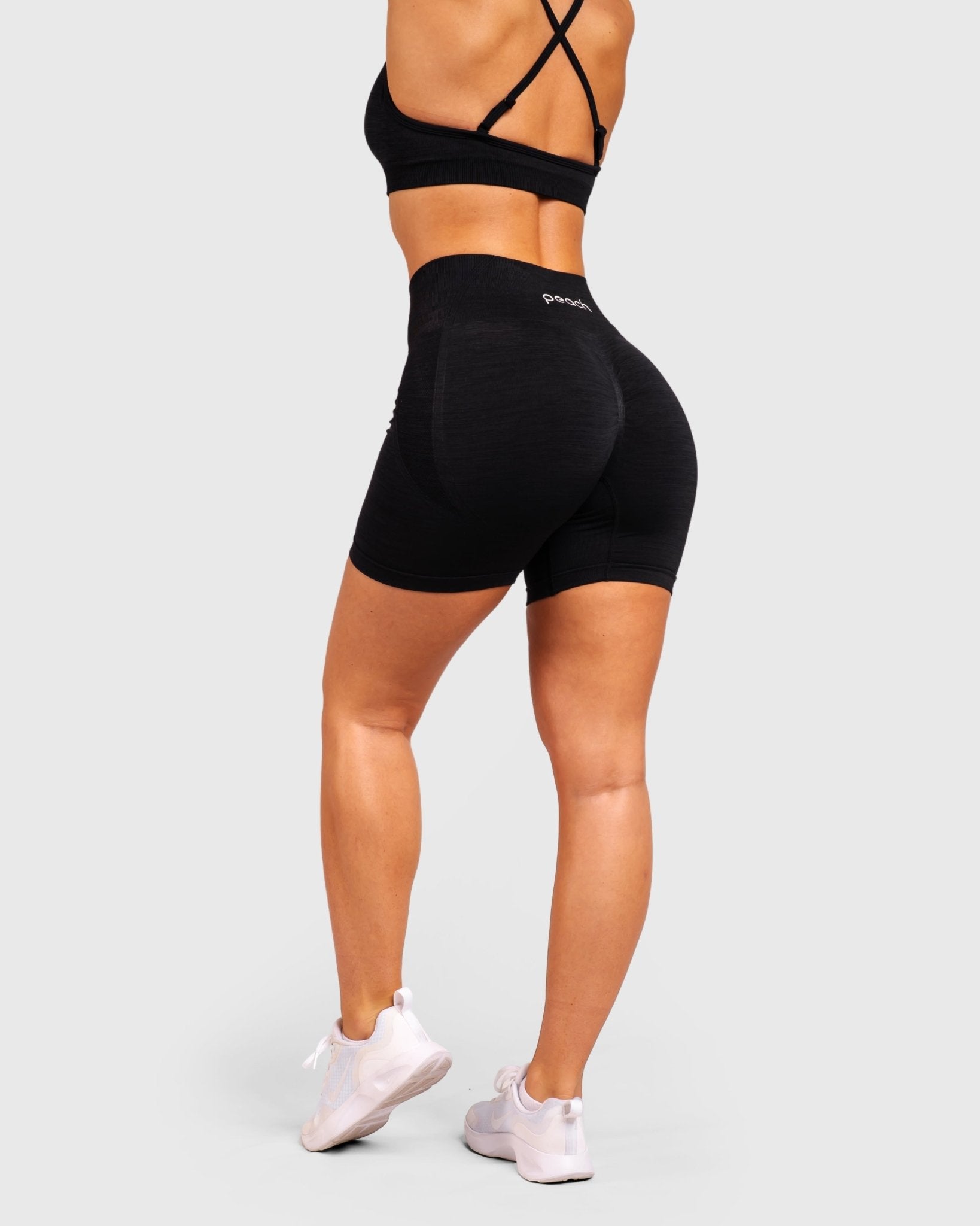 Våre Elevate Shorts har en medium lengde og medium hold, med en passform som er normal til litt romslig. De skulpturerende konturdetaljene starter foran og strekker seg ned under setemusklene, noe som fremhever figuren din og gir et skulpturert utseende.