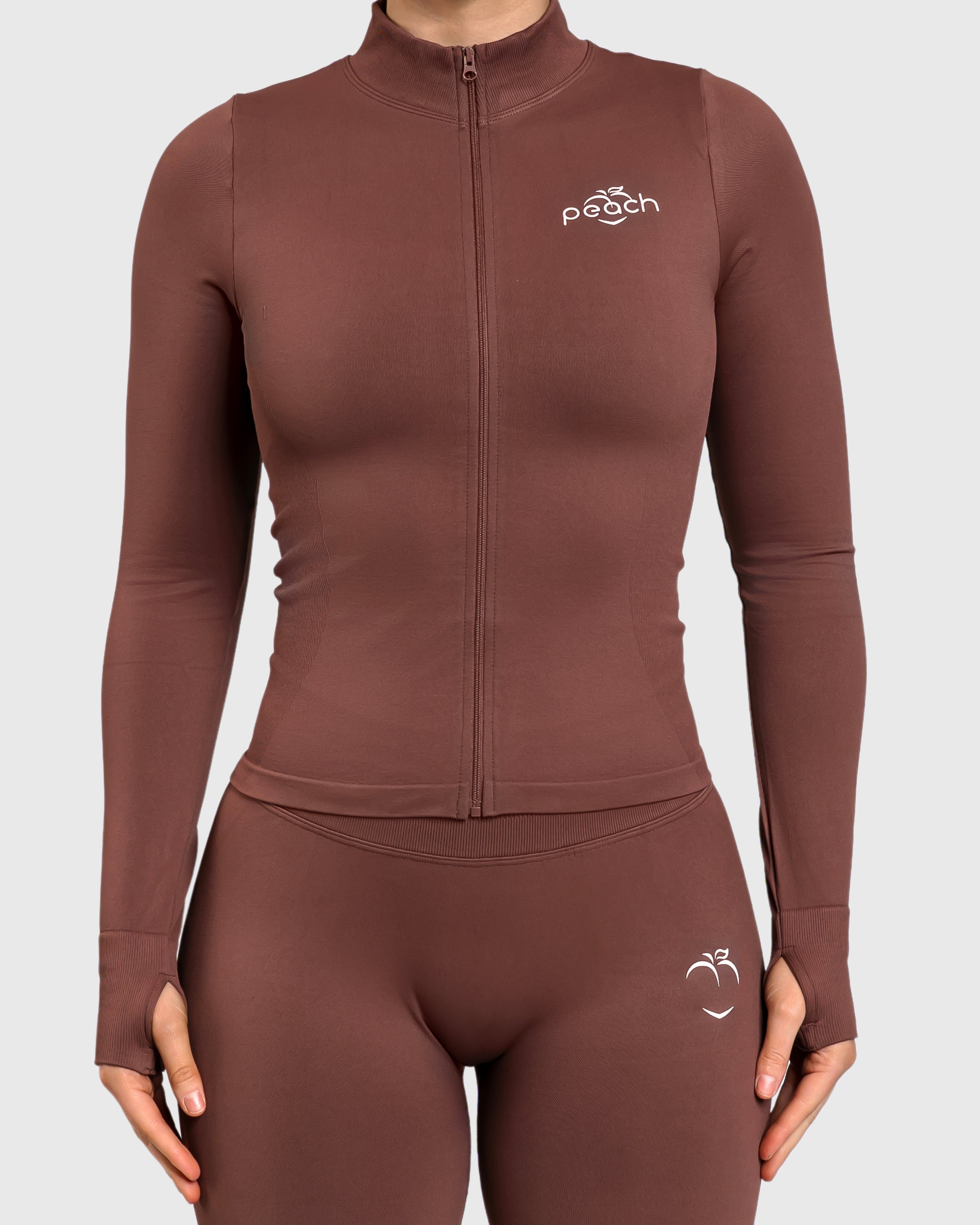 Jakken har en tight fit, flatterende sømmer og stretchy materiale som gir deg den ultimate passformen. Jakken fremhever midjen og gir en feminin silhuett, samtidig som den er komfortabel og fleksibel. Perfekt over sports-BH eller en lett topp.