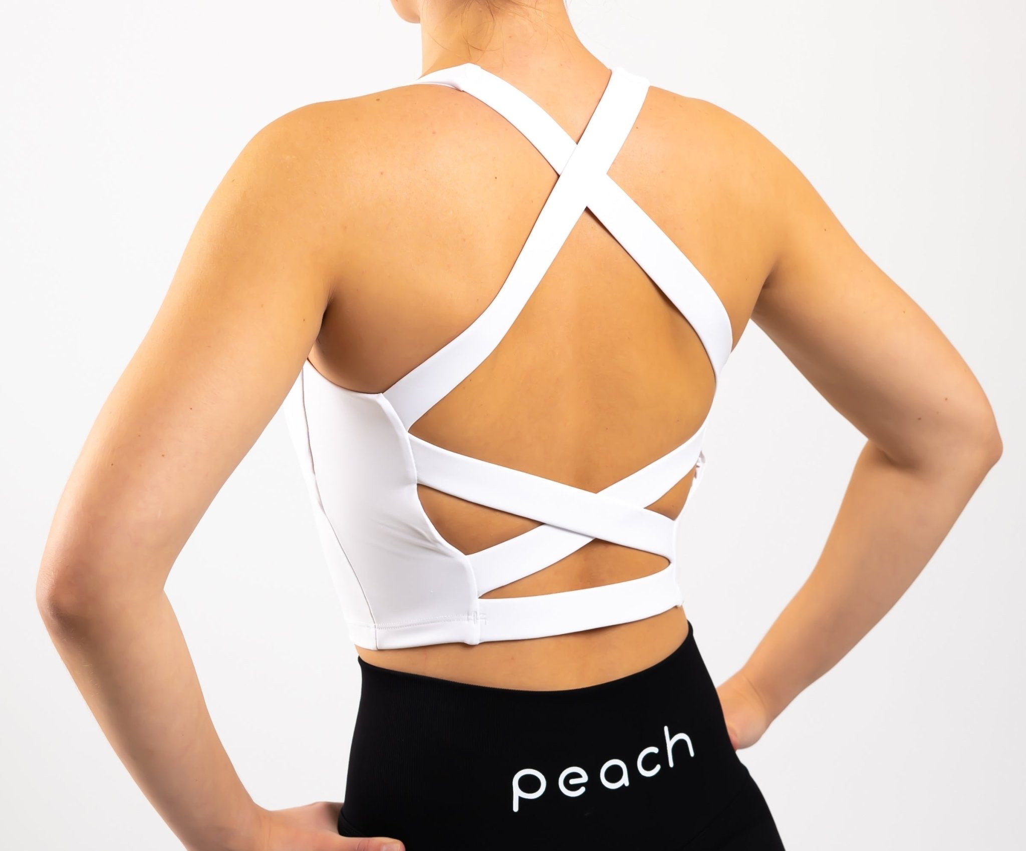 Ballerina Top with an exciting back has medium support and removable pads. Feel your best at the gym with an elegant look and a fit that highlights your figure.