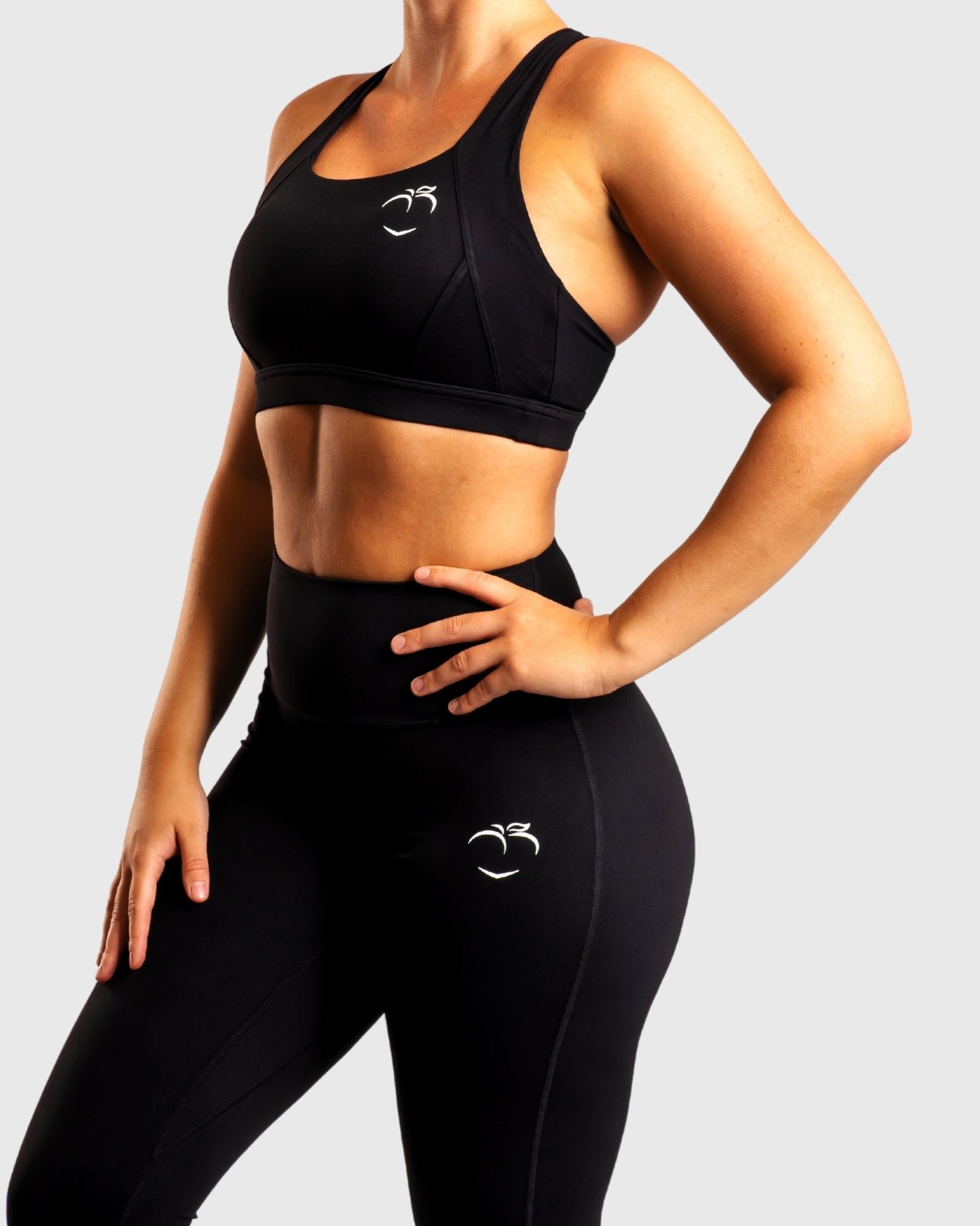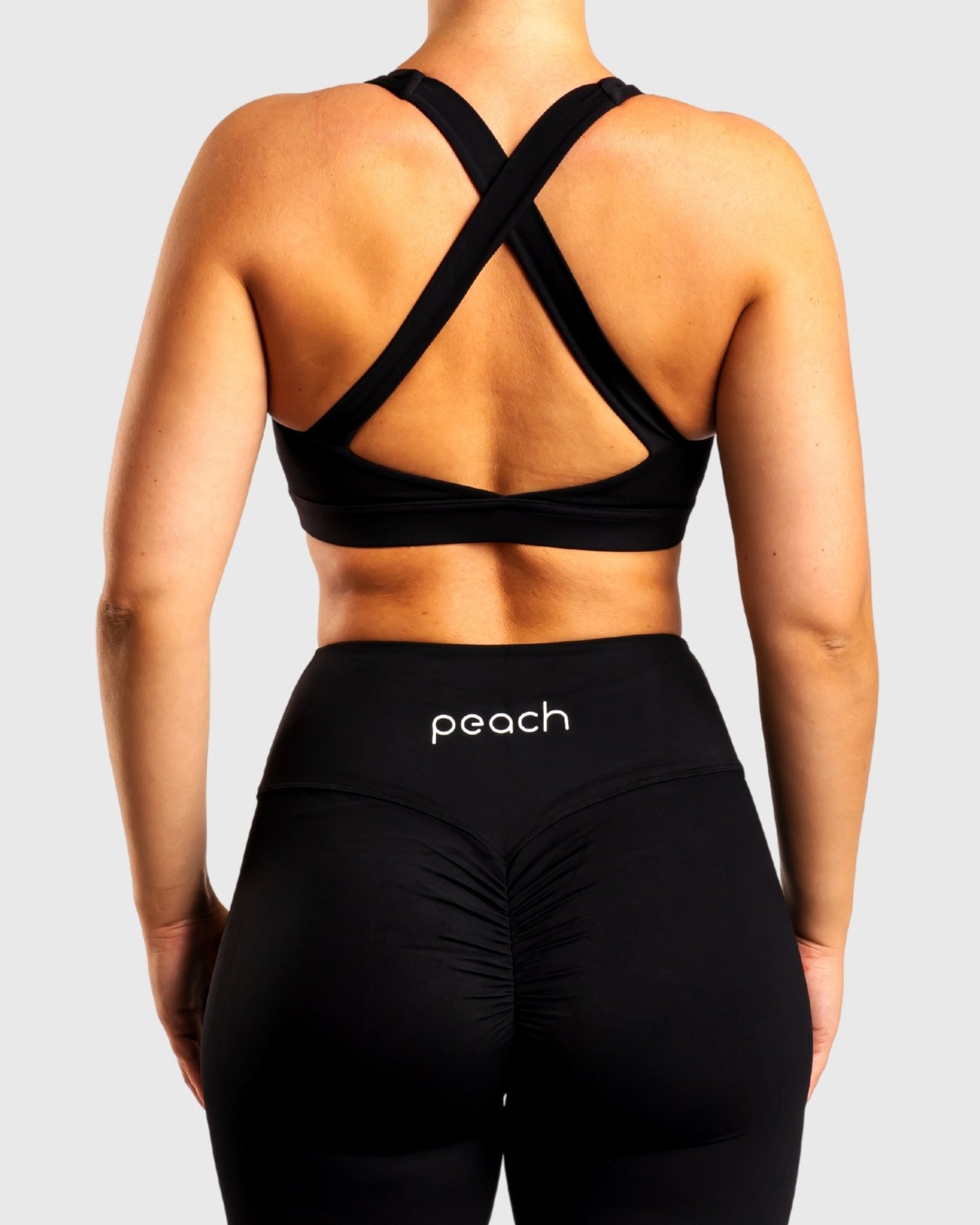 Sculpt Yoga Set, available in four stunning colors. This set features a sleek top with an elegant crisscross back design that adds a touch of sophistication. The yoga tights provide medium support and have a ruched scrunch detail that accentuates your curves.