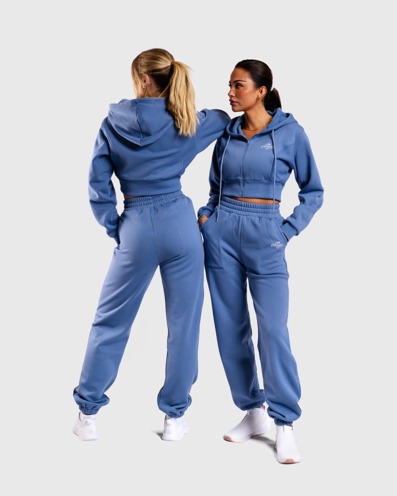 The Vibe collection, designed for comfort and style, consists of baggy joggers and a cropped zip-up hoodie. Each piece is lined with soft inner fabric for extra warmth and coziness.
