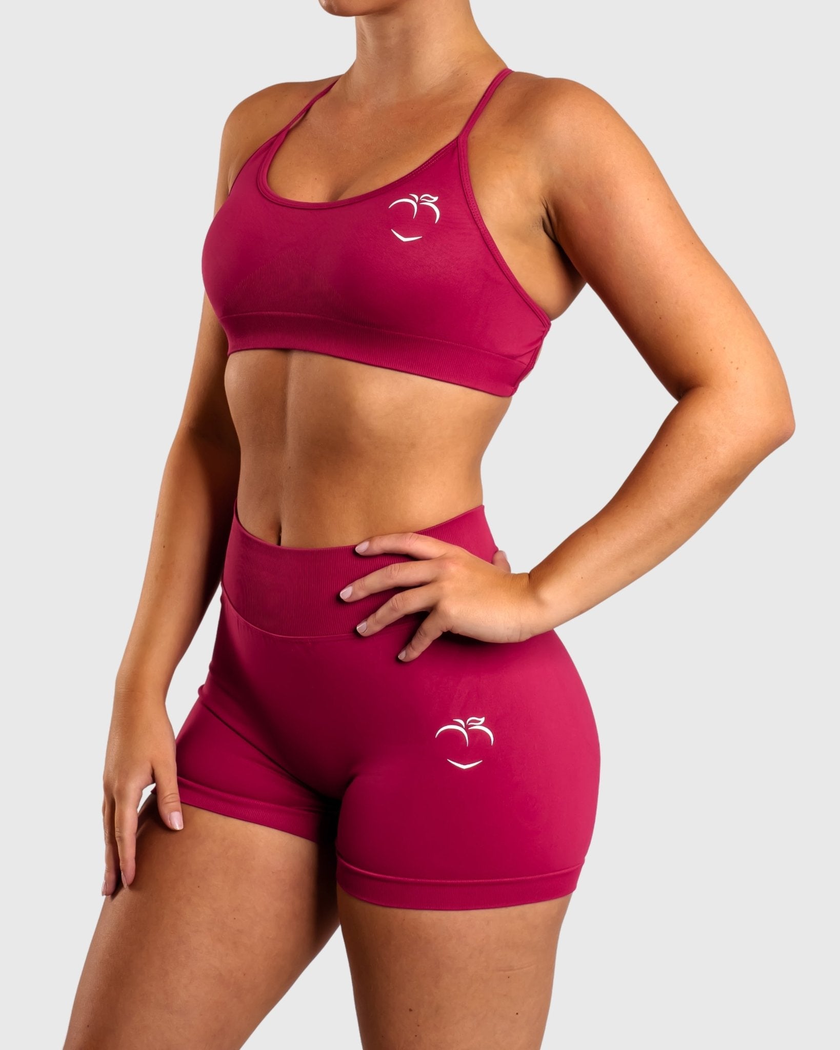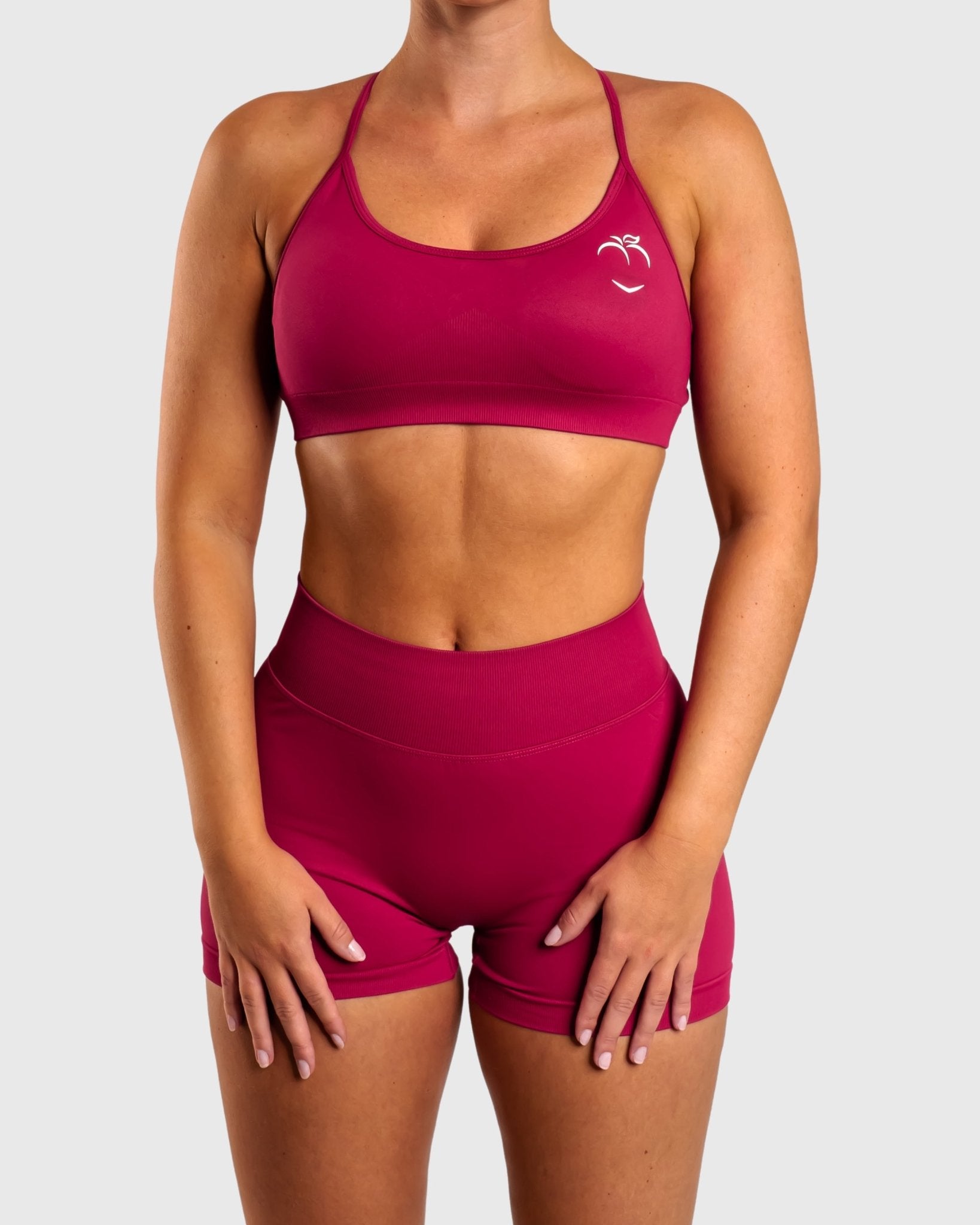 Discover the Peak set, consisting of shorts and a sports bra, available in three beautiful colors. This bra is designed with cool and edgy lines on the back.