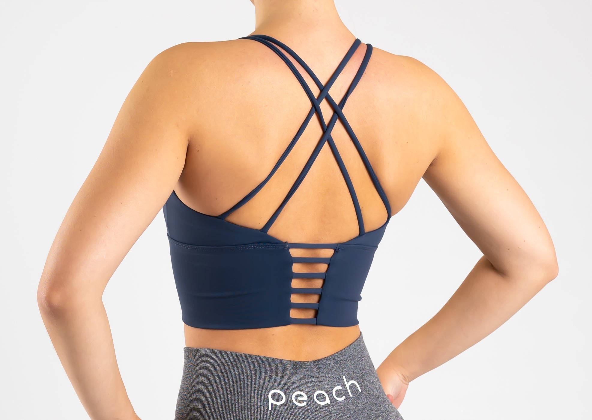 Cross Top with an exciting back has medium support and removable pads. Feel your best at the gym with a sleek look and a fit that highlights your figure.