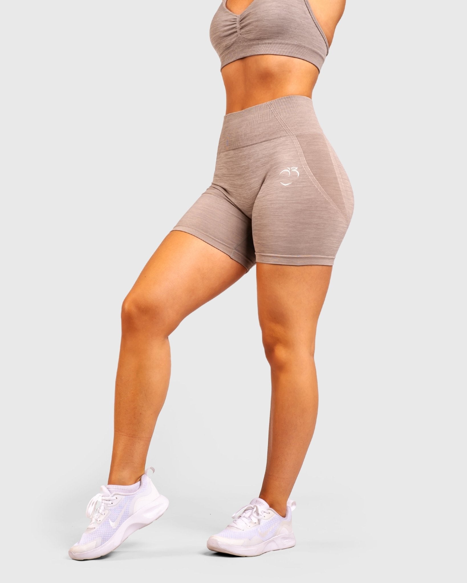 Our Elevate Shorts have a medium length and medium hold, with a fit that is normal to slightly roomy. The sculpting contour details start at the front and extend under the glutes, highlighting your figure and giving a sculpted look.