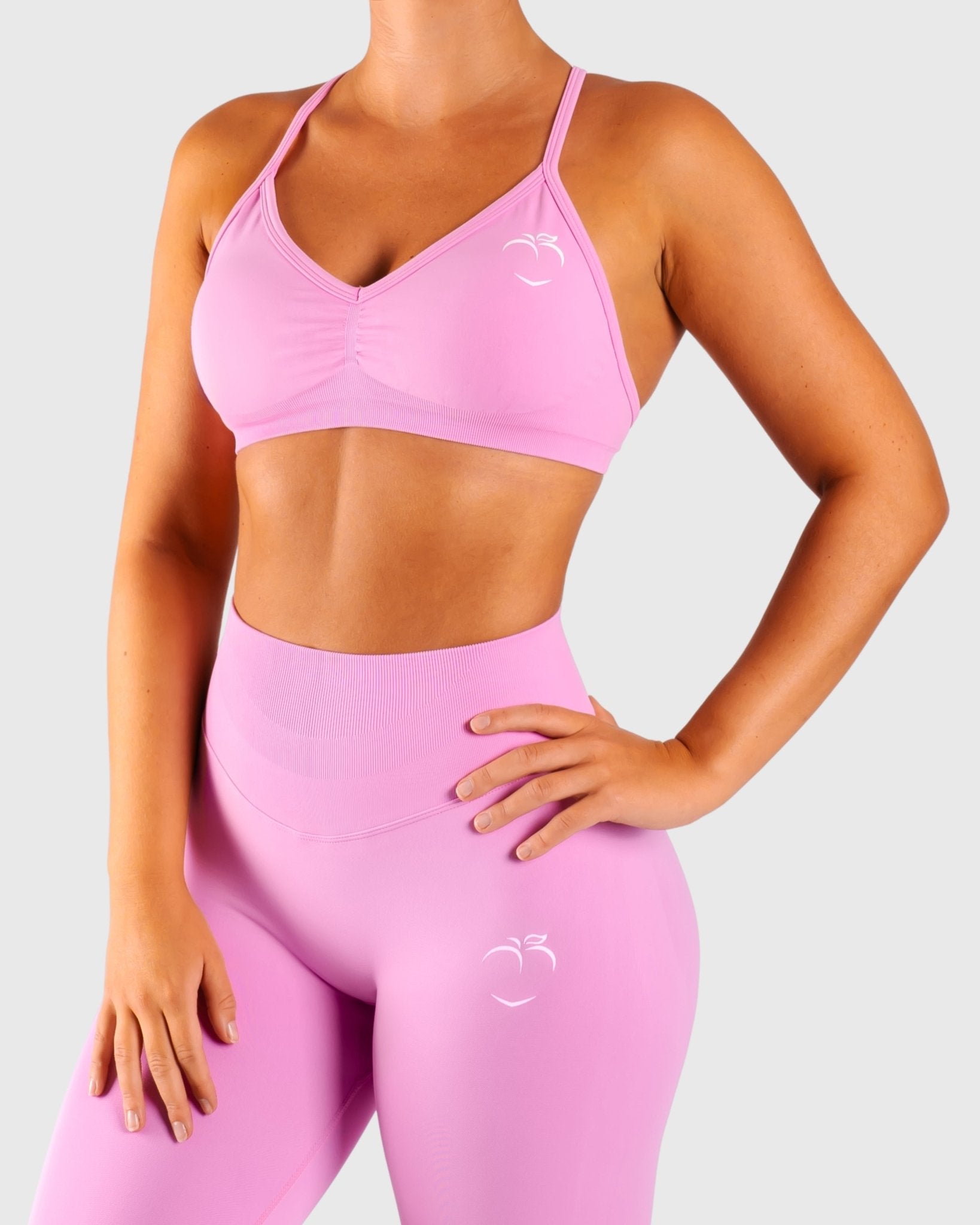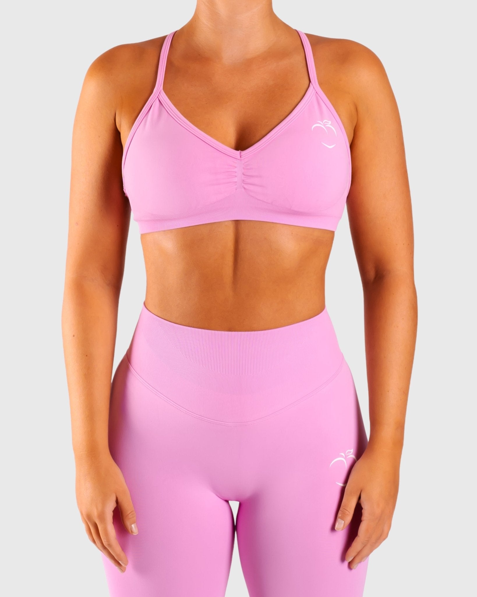 Vivid sports bra is designed for both style and function. It has a scrunch detail at the front that creates a flattering V-shaped neckline, highlighting the bust area.