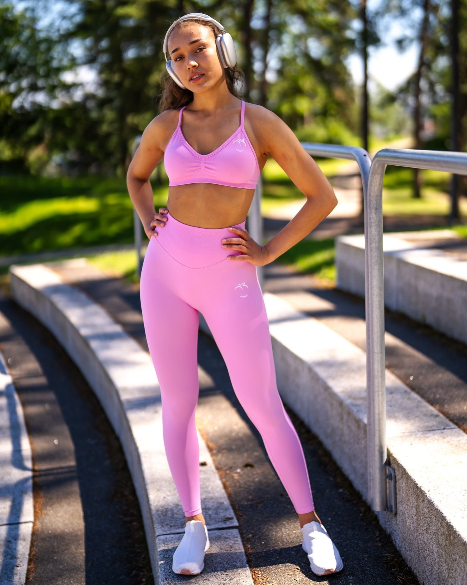 The back of the sports bra features a unique design that provides support while allowing full freedom of movement. With its sculpting fit and sleek silhouette, the Vivid sports bra perfectly complements the tights.